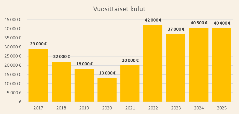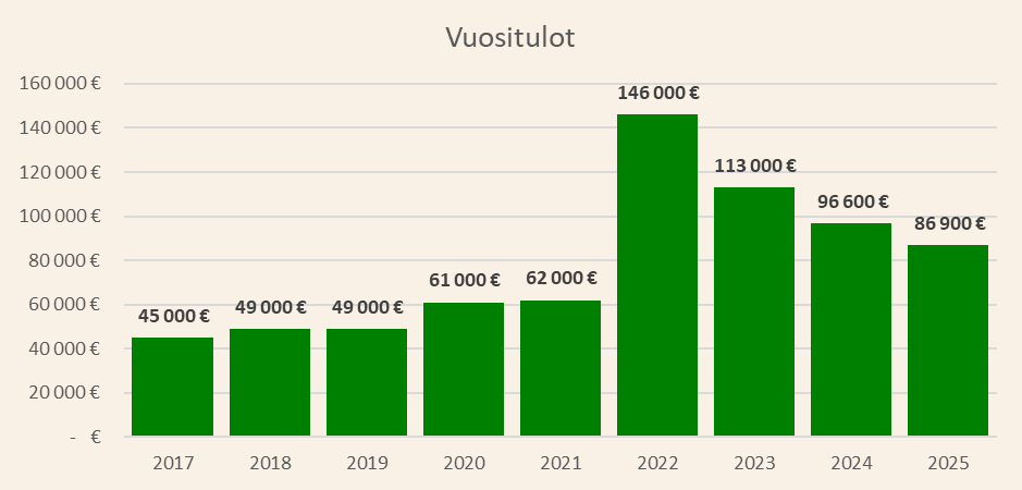 - Vuosi 2022: Sain merkittävän kertaluontoisen palkkion ja muutimme maaseudulle omakotitaloon