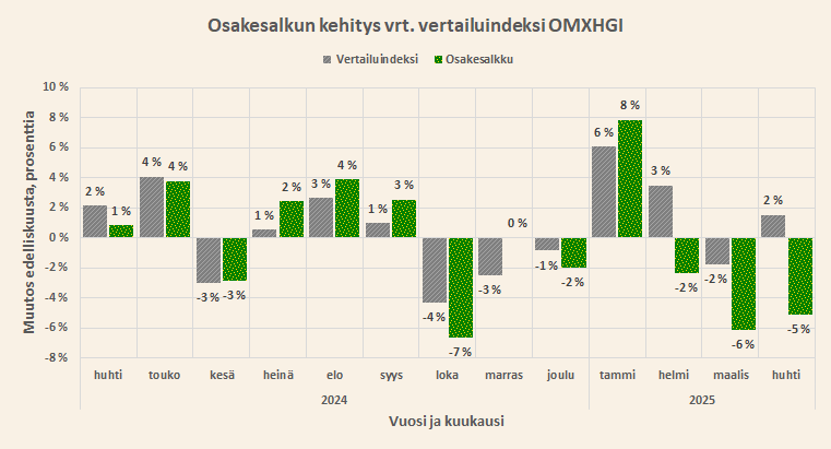 Huhtikuussa sijoitussalkkuni laski 5%, kun Helsinki nousi 2%.