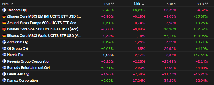 Mutta sellaista se osakepoiminta on, jotkut tiketit nousevat ja toiset laskevat. Omalla kohdallani tänä vuonna on merkittävästi noussut vain Harvia ja indeksirahastot, mutta nekin jo itsessään riittivät kohtuulliseen 16,8% vuosituottoon.