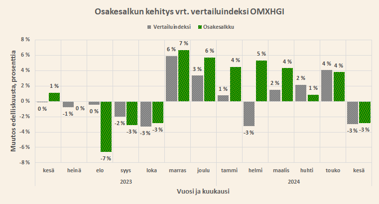 Kesäkuussa salkkuni laski 3%, mutta voitti OMXHGI:n niukasti.