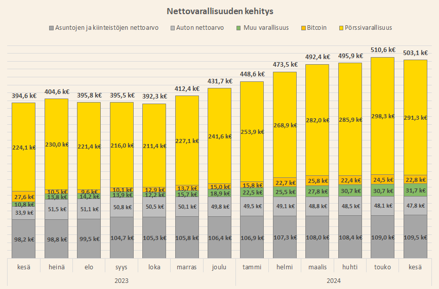 Nettovarallisuuteni oli 503 100 euroa kesäkuun lopussa.