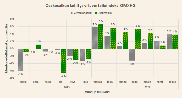 Salkkuni nousi 4% käsi kädessä Helsingin pörssin kanssa toukokuussa.